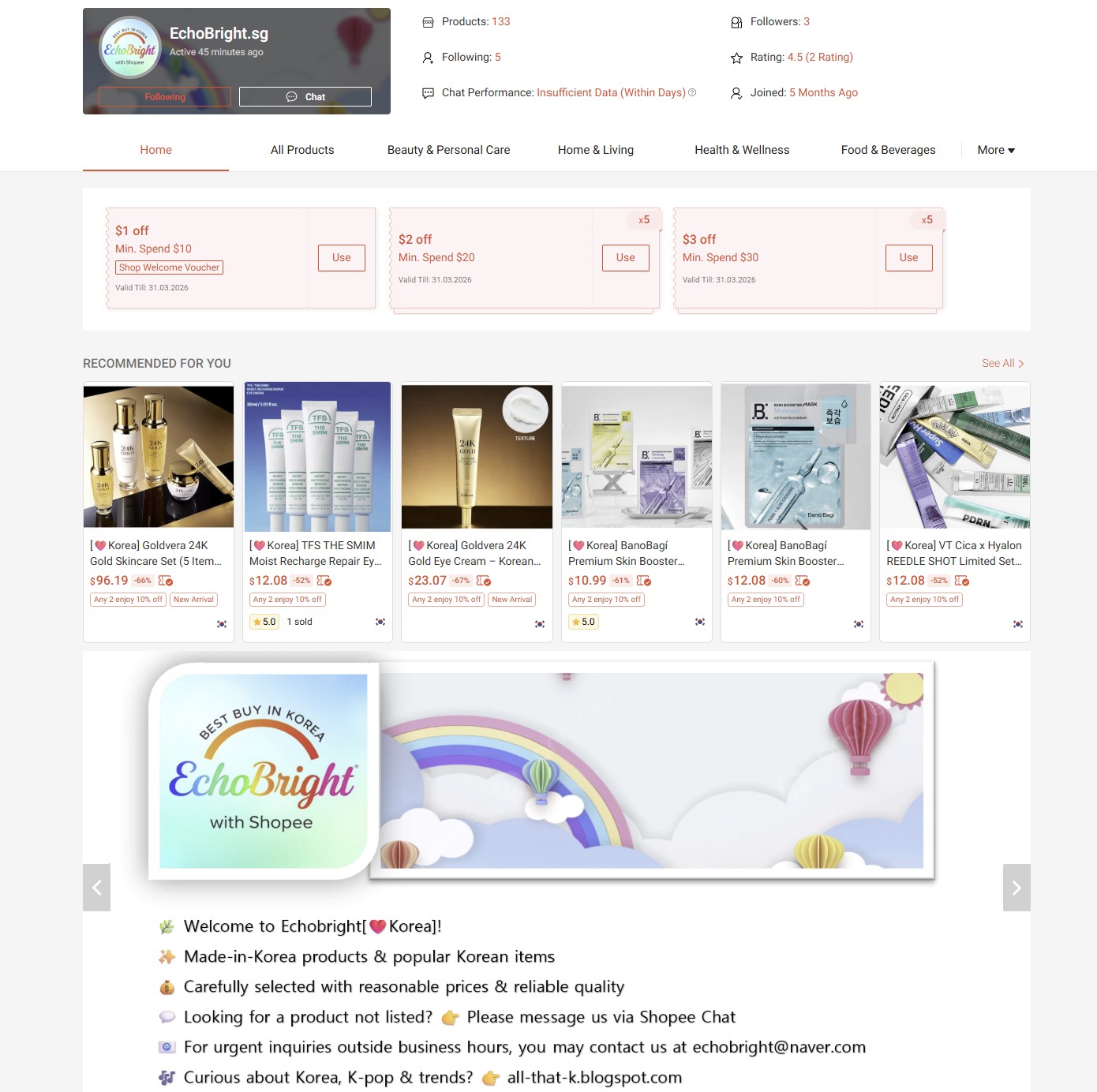 | 쇼피 Shopee 찐 소개 : 한국 뷰티를 더 가깝게, EchoBright 이야기 (4) | 2026.01.22 |